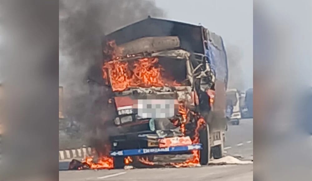 टक्कर इतनी तेज थी कि ट्रक में आग लग गई। हालांकि, आग कैसे लगी या किसी ने जानबूझकर लगाई, यह बात स्पष्ट नहीं हो सका है। पुलिस मौके पर पहुंचकर मामले की जांच कर रही है। इस दुर्घटना के कारण हाईवे पर कुछ देर तक यातायात बाधित रहा, जिसे बाद में नियंत्रित कर लिया गया।