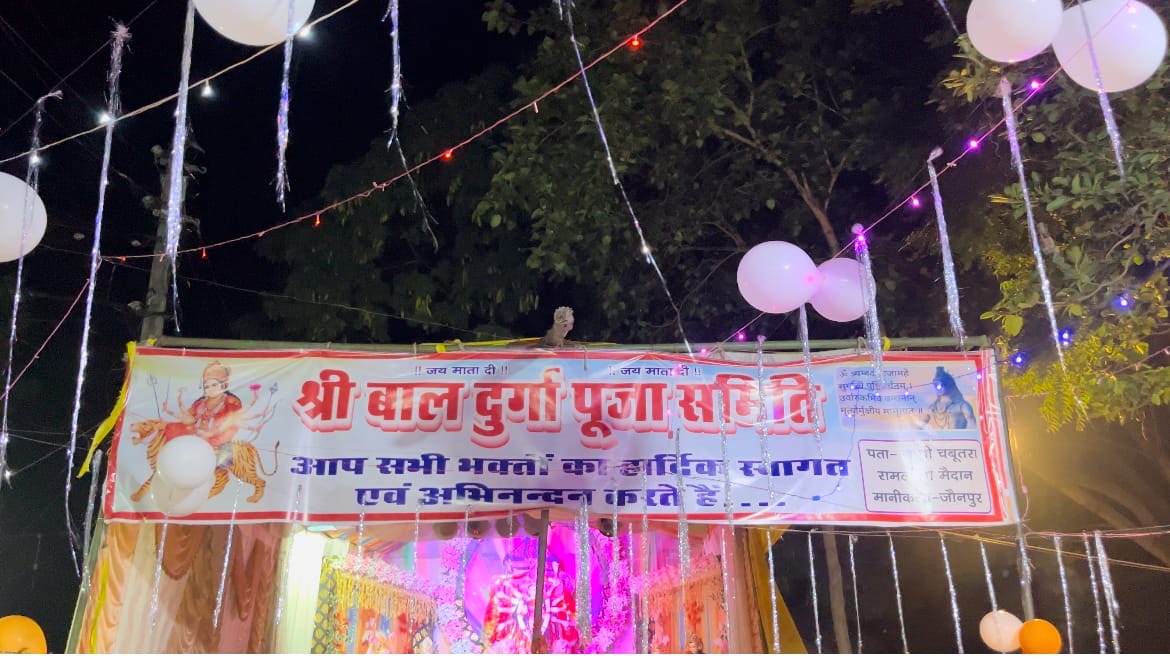 मानी कला।जौनपुर (उत्तरशक्ति)।थाना खेतासराय क्षेत्र के अंतर्गत ग्राम मानी कला गांधी नगर (गांधी चाबुतरा) राम लीला मैदान मे स्थापित श्री बाल दुर्गा पूजा समिति की तरफ से दिनांक 10=09=2024 दिन बृहस्पतिवार की रात 8 वजे से महा आरती और डांडिया का कार्य क्रम प्रस्तुत हुआ।