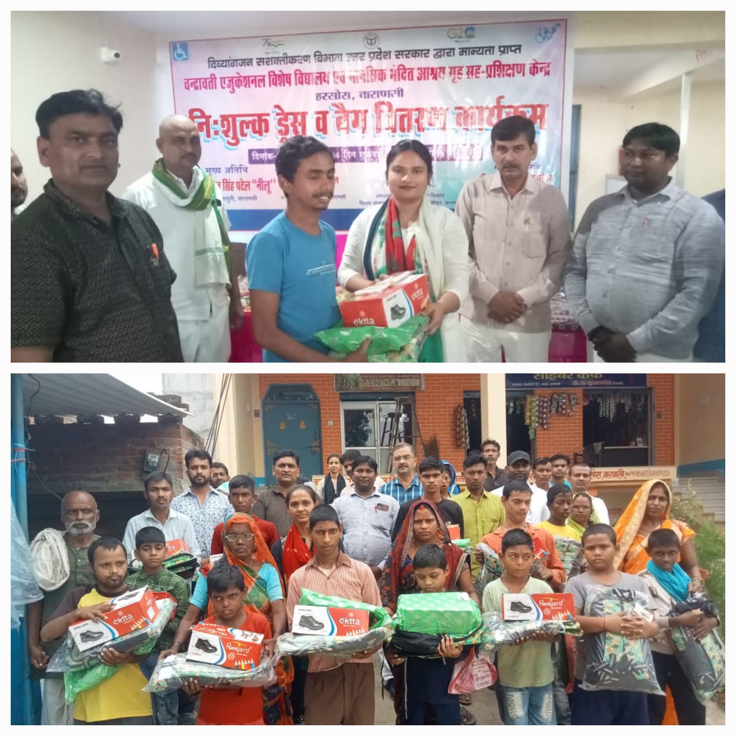 दिव्यांग जनों की सेवा भगवान की पूजा से बढ़कर है- अदिति पटेल दिव्यांग बच्चों को नि:शुल्क ड्रेस जूता बैग वितरण