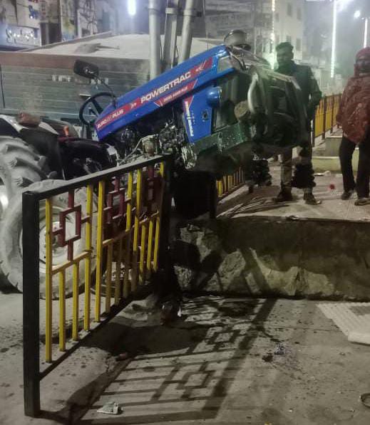 वाराणसी: तेलियाबाग तिराहे पर तेज़ रफ़्तार ट्रैक्टर रेलिंग तोड़ फुटपाथ पर चढ़ा, बड़ी दुर्घटना टली