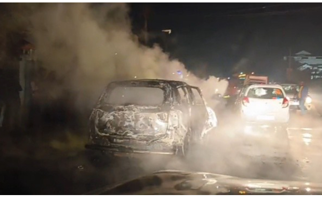 जौनपुर,चलती कार में अचानक लगी भीषण आग, देखते ही देखते जलकर हुई खाक