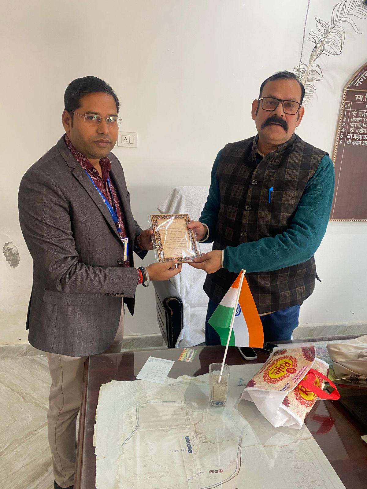 शाखा प्रबंधक ने नगर पंचायत अध्यक्ष को किया सम्मानित