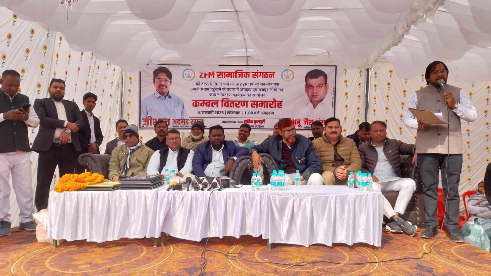 फूलपुर,आजमगढ़ (उत्तरशक्ति ) । ज़ेड एफ एम सामाजिक संगठन के द्वारा एक भव्य कार्यक्रम में 250 से अधिक लोगों में कंबल वितरण किया गया। आयोजित कंबल वितरण समारोह सामाजिक संगठन जेड एफ एम के स्थापना दिवस के अवसर पर किया गया l जिसमें ठंड में असहाय व जरूरतमंदों को कंबल वितरित किया गया l संस्था के संस्थापक जीशान अहमद खान के दिशा निर्देशन में आयोजित कंबल वितरण कार्यक्रम में मुख्य अतिथि फूलपुर कोतवाली प्रभारी सच्चिदानंद, अबू जैश अंसारी क्षेत्रीय वरिष्ठ नेता ने कार्यक्रम का शुभारंभ कार्यक्रम मंच से फीता काटकर किया l जरूरतमंदों को कंबल देते हुए उन्होंने इस मौके पर कहा कि सामाजिक व्यवस्था में हम सभी की जिम्मेदारी होती है l
