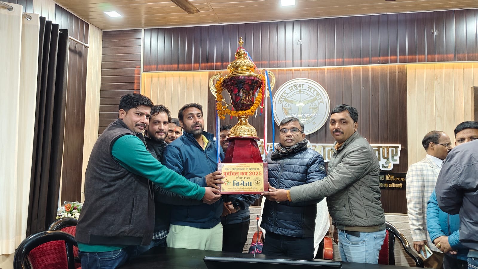 जौनपुर(उत्तरशक्ति)।जनपद में बेसिक शिक्षा विभाग के सौजन्य से आयोजित की गई जिसमें कुल 6 टीमों ने हिस्सा लिया जौनपुर. गोरखपुर. मिर्जापुर. प्रतापगढ़ .बलिया.कौशांबी की टीमो ने हिस्सा लिया फाइनल मैच जौनपुर गोरखपुर के बीच खेला गया जौनपुर की टीम ने पहले बल्लेबाजी करते हुए 10 विकेट पर 167 रन बनाए जवाब में गोरखपुर की टीम ने 10 विकेट पर 167 रन पर आल आउट हो गई सुपर ओवर में गोरखपुर ने पहले बल्लेबाजी करते हुए सात रन बनाए जौनपुर की टीम आखिरी गेंद पर विजई हुई।