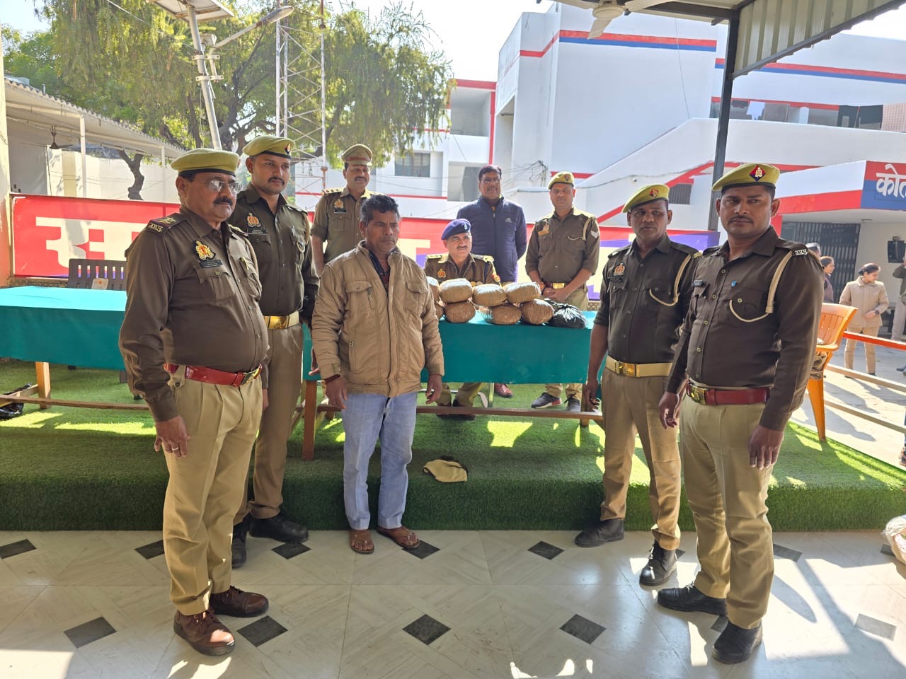 शाहगंज,जौनपुर(उत्तरशक्ति)।थाना शाहगंज पुलिस टीम द्वारा एक शातिर अभियुक्त को 10 किलो 500 ग्राम गांजा के साथ किया गया गिरफ्तार।पुलिस अधीक्षक जौनपुर द्वारा जनपद में अपराध की रोकथाम एवं अपराधियों की गिरफ्तारी हेतु के विरुद्ध चलाए जा रहे अभियान के क्रम में अपर पुलिस अधीक्षक नगर के निर्देशन व क्षेत्राधिकारी शाहगंज के पर्वेक्षण में शाहगंज पुलिस टीम द्वारा चेकिग के दौरान शातिर अभियुक्त ओमकार वर्मा पुत्र हीरालाल वर्मा निवासी खेतापुर बाल्मिकीपुर थाना सरपतहा जनपद जौनपुर को नाजायज गांजा के साथ सुरिश पेट्रोल पंप के पास से दिनांक 17.01.2025 को गिरफ्तार किया गया। गिरफ्तारी व बरामदगी के आधार पर थाना स्थानीय पर मु0अ0सं0 0019/ 2025 धारा 8/20 एनडीपीएस एक्ट पंजीकृत कर आवश्यक विधिक कार्यवाही की जा रही है।