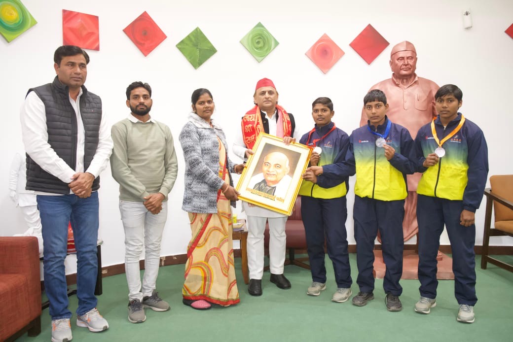 वाराणसी:कुरास गेम में परचम लहराने वाली बेटियों को अखिलेश यादव ने किया सम्मानित