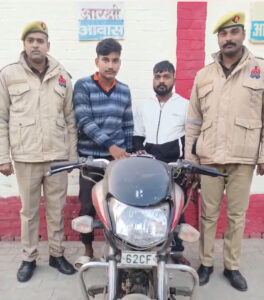 जौनपुर (उत्तरशक्ति)।थाना लाइन बाजार पुलिस टीम द्वारा 02 शातिर चोर मय 01 चोरी की मोटरसाइकिल के साथ किया गया गिरफ्तार। पुलिस अधीक्षक जौनपुर द्वारा अपराध की रोकथाम एवं अपराधियों की गिरफ्तारी हेतु चलाये जा रहे अभियान के क्रम में अपर पुलिस अधीक्षक नगर के दिशा-निर्देशन एवं क्षेत्राधिकारी नगर के पर्यवेक्षण तथा प्रभारी निरीक्षक थाना लाइन बाजार के कुशल नेतृत्व में थाना लाइन बाजार पुलिस टीम द्वारा चेकिंग के दौरान