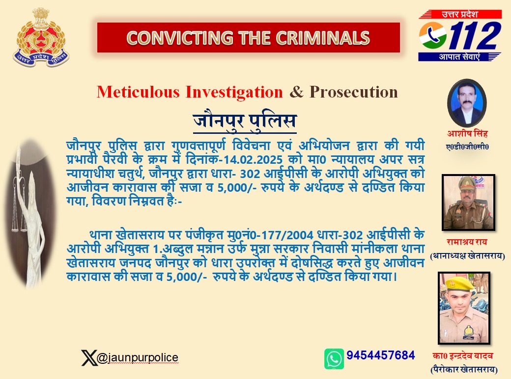 जौनपुर: हत्यारोपी को आजीवन कारावास,