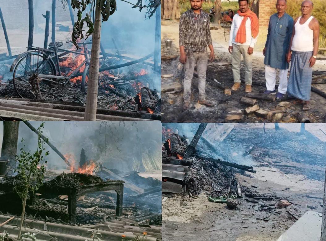 केराकत:सार्ट सर्किट से मड़हे में लगी आग, लाखों का सामान जलकर हुआ राख।