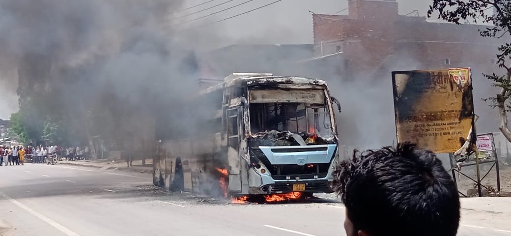 जौनपुर:सिकरारा में चलती हुई बस बनी आग का गोला चालक की सूझबूझ से भारी हादसा टला