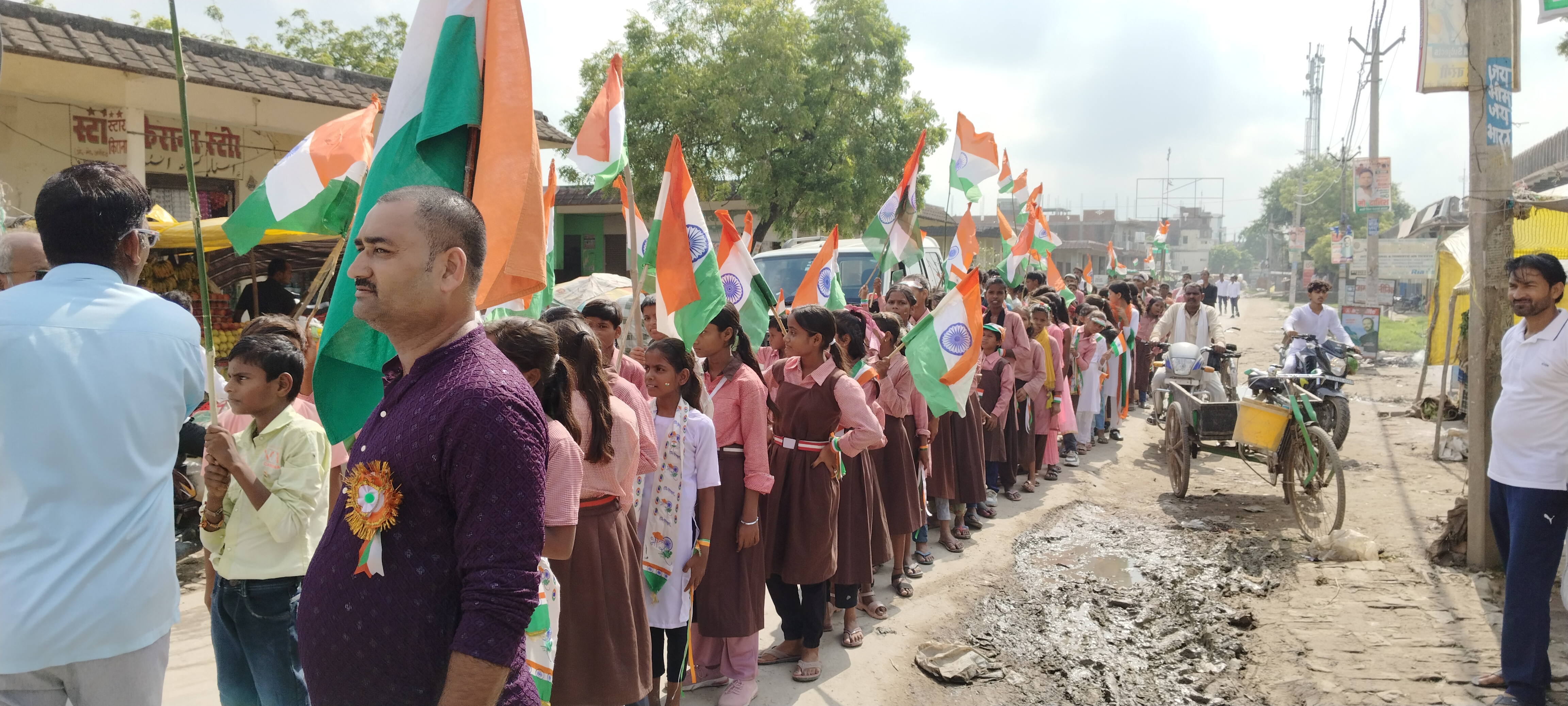 स्कूलों में हुआ ध्वजारोहण, रैली निकाल कर हिंदुस्तान ज़िंदाबाद के नारे के साथ ग्रामीण क्षेत्र होते हुए स्कूल पर जाके समाप्त किया