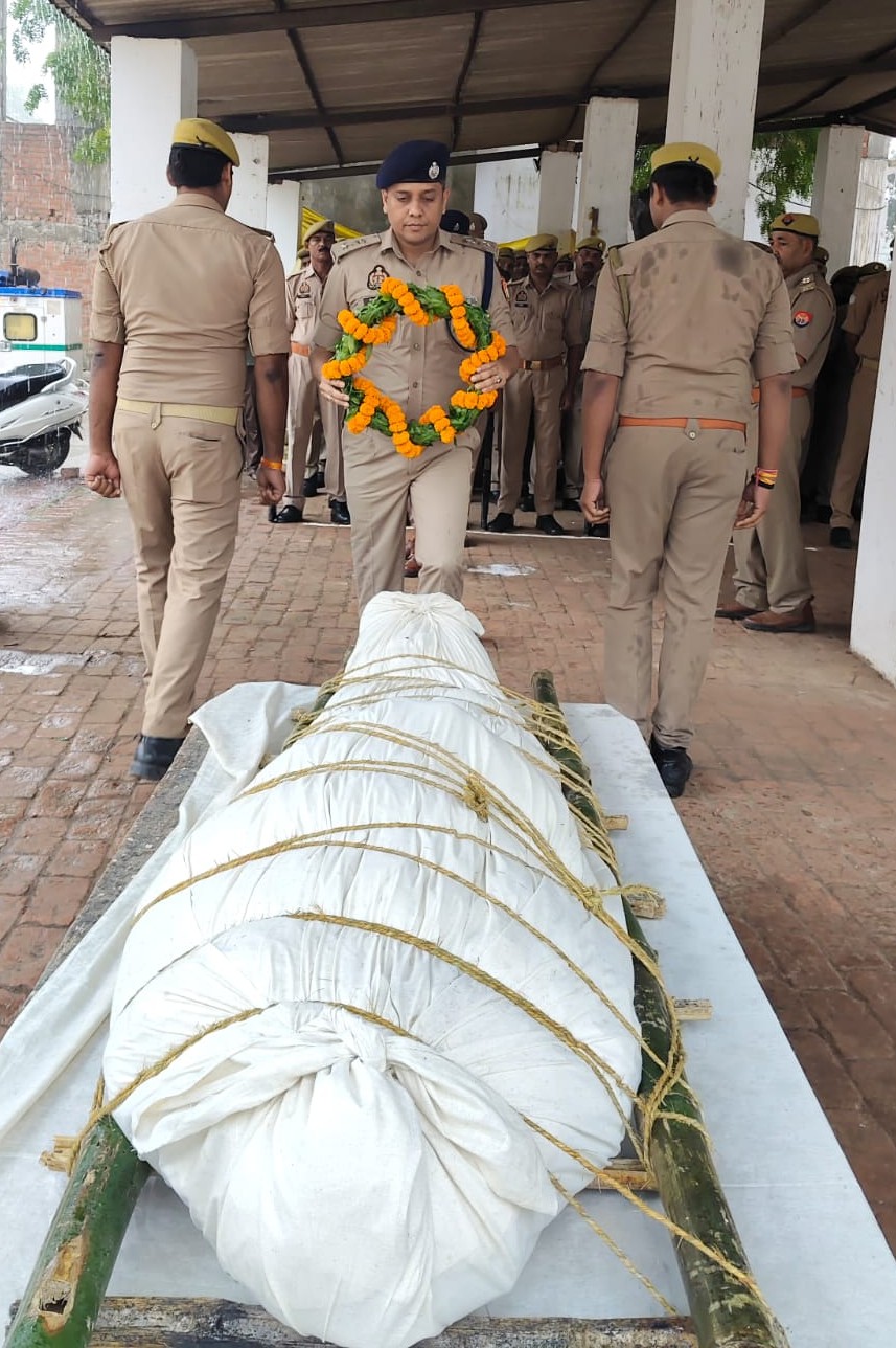 जौनपुर ( उत्तरशक्ति) l थाना बदलापुर में तैनात मुख्य आरक्षी लल्लन प्रसाद का ड्यूटी के दौरान हार्टअटैक से निधन हो गया उनके असमायिक दुःखद निधन पर जौनपुर पुलिस परिवार की ओर से विनम्र श्रद्धांजलि दी गई,पुलिस अधीक्षक जौनपुर एवं जौनपुर पुलिस परिवार द्वारा रिजर्व पुलिस लाइन में मुख्य आरक्षी लल्लन प्रसाद के पार्थिव शरीर पर श्रद्धासुमन अर्पित कर श्रद्धांजलि दी गयी एवं मौन धारण कर सलामी देकर शोक संवेदना व्यक्त की गयी।