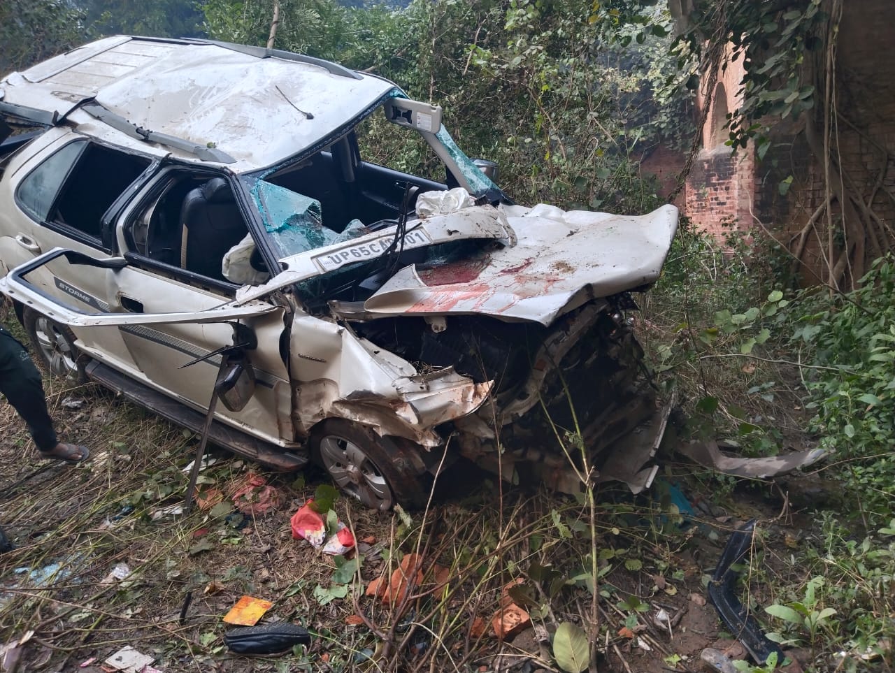 मिली जानकारी के अनुसार जनपद वाराणसी के सिगरा थाना के कैन्ट प्लेट से बारात गौराबादशाहपुर थाना के एकौना गांव निहोर सोनकर के घर उनके दोनो नतिनी की सादी के लिए दो जगह से बारात आयी थी जो बारात जाम नगर गुजरात प्रान्त से आयी थी उसका द्वार चार हो गया था कैन्ट से आयी बारात की तैयारी द्वारचार के लिए किया जा रहा था कि जिनको हल्की चोटे आयी थी उन्होने फोन से बराती को सुचना दिया कि मुफ्तीगंज नाले में कार पलटने से तीन लोग की मौत हो गयी है सुचना पर आनन फानन में घराती बराती मौके पर पहुंच कर देखा कि इसमें खुद बारात मालिक ही मरा हुआ है सादी नहीं हुई बारात वापस चली गयी ।