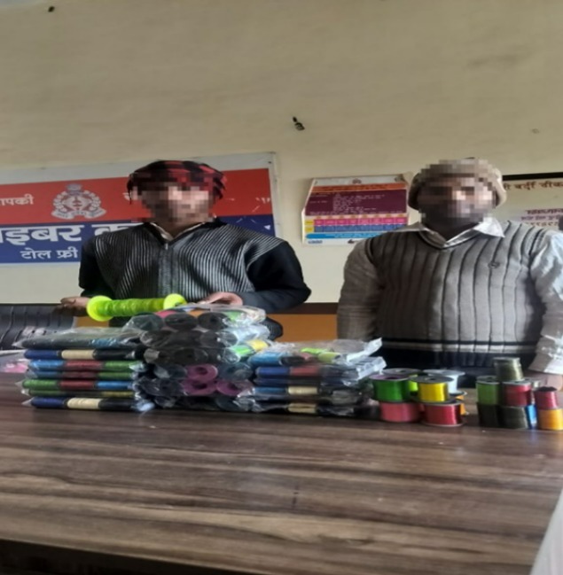 जौनपुर:तेजीबाजार, पुलिस द्वारा प्रतिबंधित चायनीज मांझा की बिक्री करने वाले 02 आरोपियों को किया गया गिरफ्तार।