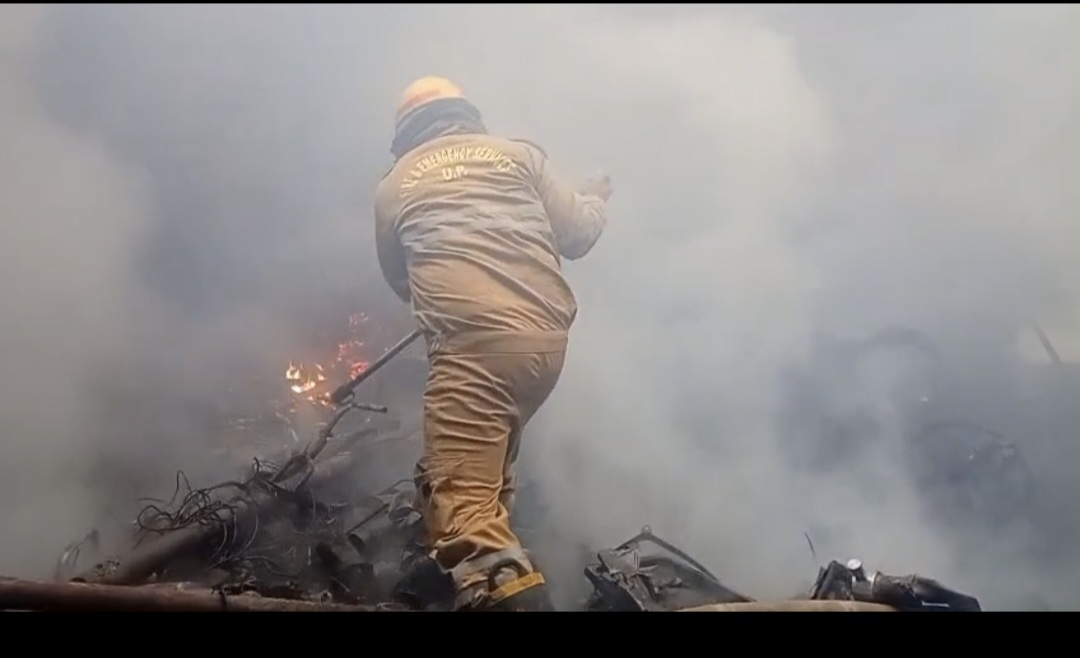 खेतासराय,जौनपुर: कबाड़ की दुकान में लगी भीषण आग, लाखों का नुकसान