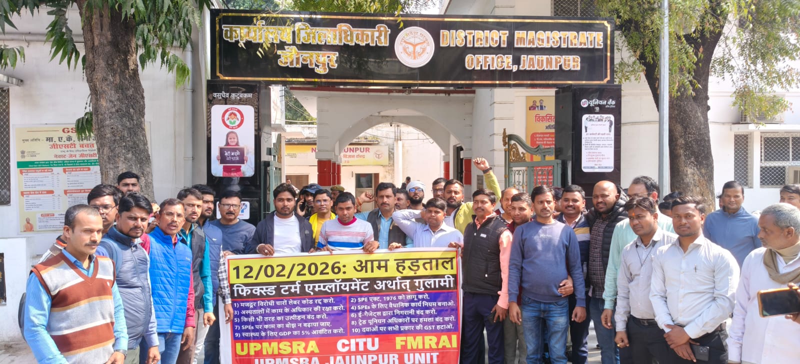 जौनपुर ( उत्तरशक्ति )।12 फरवरी यूपीएमएसआरए एवं एफएमआरएआई के आवाहन पर अन्य श्रमिक संगठनों के साथ जौनपुर के समस्त दवा प्रतिनिधि श्रमिकों के गुलामी के प्रतीक चार श्रम संहिताओं के विरुद्ध अपनी मांगो को लेकर हड़ताल पर रहे । जौनपुर ईकाई के सभी दवा प्रतिनिधियों ने इकाई कार्यकाल बीआरपी मैदान से दिन में 11:30 बजे से विशाल जुलूस रैली निकल कलेक्ट्रेट परिसर पहुंचकर माननीय प्रधानमंत्री जी को अपनी मांगो को लेकर एक ज्ञापन द्वारा जिला अधिकारी भेजा। ज्ञापन में निम्नलिखित प्रमुख मांगें है ।चार श्रम संहिताओं को निरस्त करें और बिक्री संवर्धन कर्मचारी अधिनियम, 1976 सहित मौजूद श्रम कानून को जारी रखें। सेल्स प्रमोशन कर्मचारियों की निश्चित अवधि रोजगार पर नियुक्त की अनुमति न दें। सुनिश्चित करें कि नियोक्ताओं द्वारा सहस्त्र प्रमोशन कर्मचारियों की कोई छटनी, स्थानांतरण आदि न किया जाए। सभी श्रेष्ठ प्रमोशन कर्मचारियों को समय पर वेतन का पूरा भुगतान सुनिश्चित करें। बिक्री संवर्धन कर्मचारी अधिनियम,1976 के प्रावधानों के तहत विकृत संवर्धन कर्मचारियों के लिए वैधानिक कार्य नियम बनाएं। इलेक्ट्रॉनिक गैजेट्स के माध्यम से निगरानी, ट्रैकिंग और गोपनीयता में घुसपैठ को रोकें। बोनस संदाय अधिनियम, 2015 के अनुसार उत्तर प्रदेश में कार्यरत सेल्स प्रमोशन कर्मचारियों को बोनस का भुगतान सुनिश्चित किया जाए। कर्मचारी राज्य बीमा अधिनियम,1948 के अनुसार सेल्स प्रमोशन कर्मचारियों को चिकित्सा देखभाल, सामाजिक और आर्थिक सुरक्षा प्रदान की जाए। श्रम कानून का उल्लंघन करने वाले नियोक्ताओं पर मुकदमा चलाकर उन्हें उचित सजा दी जाए। उत्तर प्रदेश औद्योगिक विवाद अधिनियम की धारा 2 (z) में संशोधन करें तथा “बिक्री संवर्धन कर्मचारी” को वर्क मैन की परिभाषा में शामिल करें। सेल्स प्रमोशन कर्मचारियों के न्यूनतम वेतन के निर्धारण के लिए वेतन बोर्ड का गठन करें। उत्तर प्रदेश में कार्यरत सेल्स प्रमोशन कर्मचारियों के लिए न्यूनतम वेतन प्रति माह रुपए 26910 की घोषणा करें। उत्तर प्रदेश में कार्यरत सेल्स प्रमोशन कर्मचारियों के लिए 8 घंटे कार्य दिवस की अनुसूची घोषित करें तथा कार्य के घंटे निश्चित करें।