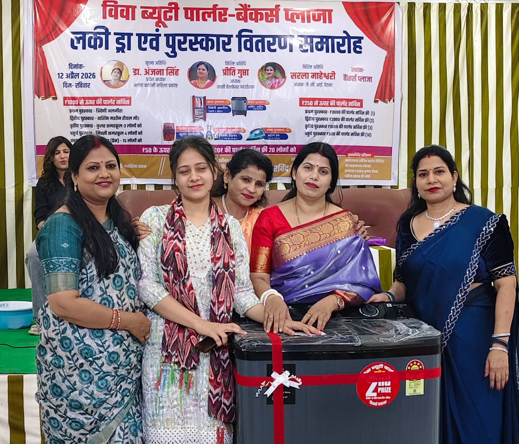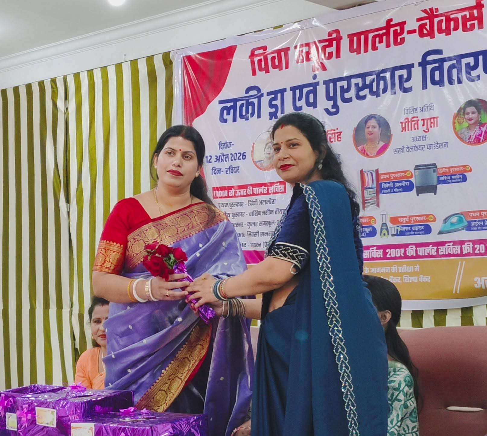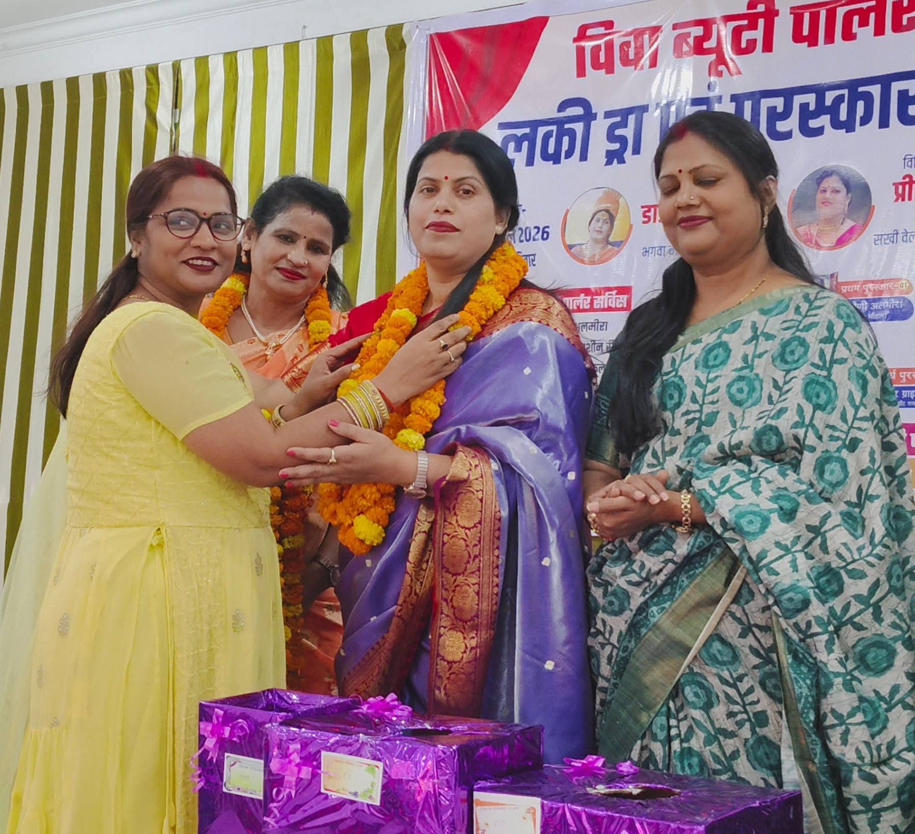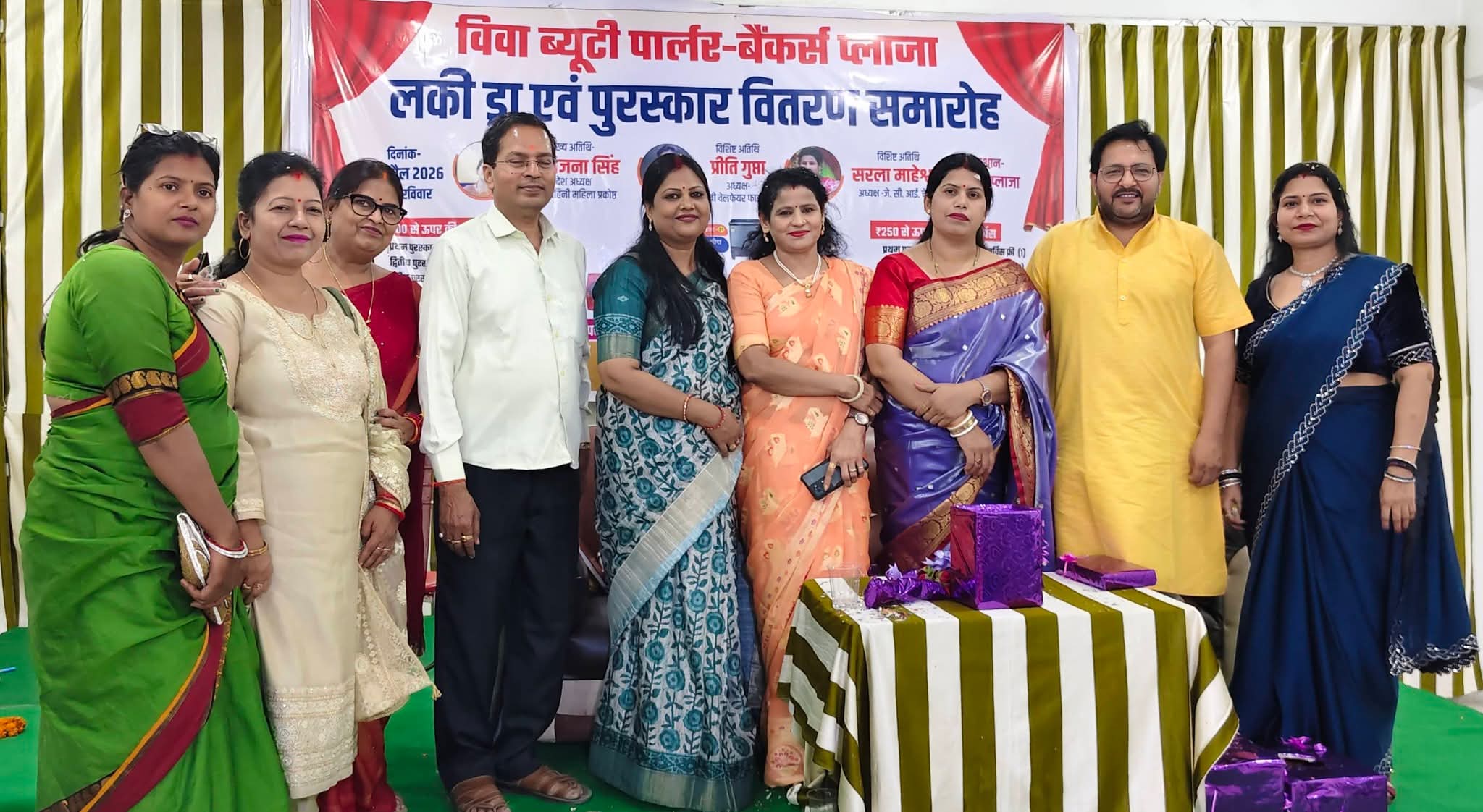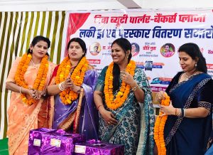 समारोह के दौरान पार्लर से जुड़ी महिलाओं एवं विभिन्न क्षेत्रों में उत्कृष्ट प्रदर्शन करने वाले प्रतिभागियों को सम्मानित किया गया। कार्यक्रम में बड़ी संख्या में स्थानीय नागरिकों एवं गणमान्य व्यक्तियों की उपस्थिति रही, जिससे आयोजन का माहौल उत्साहपूर्ण और आकर्षक बना रहा।